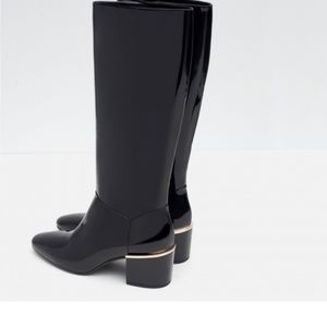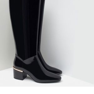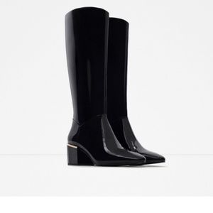 ZARA NEW LACQUERED BLACK LUXURY BOOTS 37.5