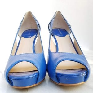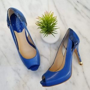 MARC FISHER Bross Peep Toe Pump Blue Leather Heel