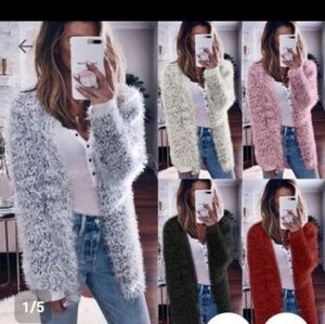 Fuzzy Long Sleeve Soft Open Cardigan. Silky, Stylish, Stretchy Polyester (machine washable), Hang Dry. Several Sizes and Colors Available: US Size S (6/8) - Length 28", Bust 38", Sleeve 22"; US Size L - (12/14) - Length 28", Bust 42", Sleeve 24". GREAT Reviews. Boutique Item.