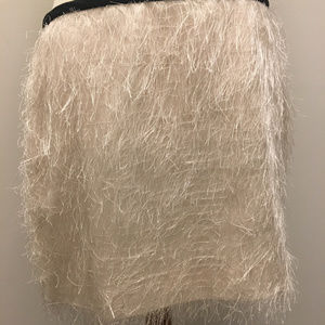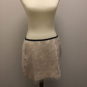Never Worn - Size 10 Rachel Roy Winter White Irredescent (yes! it has a bit of sparkle) skirt with black band and side zip. Cute but short:-)
