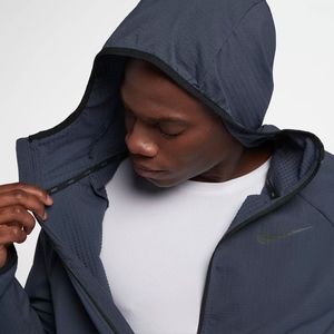 The Nike Flex Men's Full-Zip Training Hoodie features innovative thermal fabric that stretches with your body to help keep you warm & focused during your workout.