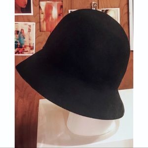 SOLD Retro Wool Black Brown Bow Bell Cloche Hat UO