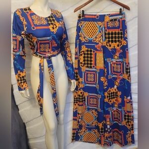 Washable shell, back neckline to bottom approx. 48 in. 2 front, waist side pockets. Botton on each collar, 4 front buttons w/2 extra buttons & orginal belt.