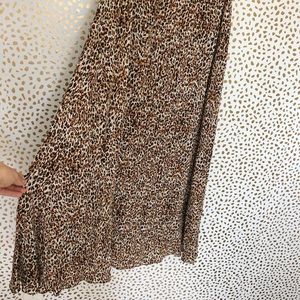 Beautiful maxi dress featuring a fierce animal print and flowy femme shape with a defined waist. Front wrapped detail creates a pretty side slit. Elegant high neckline with a cute front cutout and strappy racerback design. Hidden back zipper closure and hook-and-eye closures at the neck. Lined.