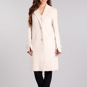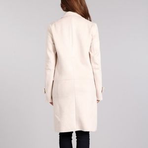 This beautiful cream color faux suede coat is classic and stylish. It is incredibly soft to touch and is the perfect coat for layering.
