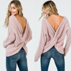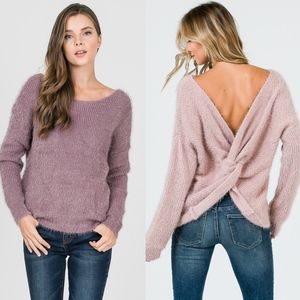 Cute twist back fuzzy sweater