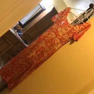 NWOT!!! Never worn!!! This beautiful dress has a sheer fabric with stitching that goes down to about your mid calf with a low back and it even has pockets!!! The sleeves are sheer and so is the bottom half of the skirt and in the photo you can see it it has a nude under dress. This will look gorgeous on anybody!! I purchased this for a special occasion but the weather changed and was too cold so I end up wearing something else and I haven’t had another reason to wear this beautiful dress.