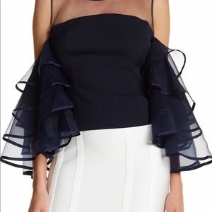Gracia Navy blue cold shoulder tiered sleeve blouse. Size medium new with tags