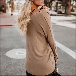 Easy basics are what we live for. The Elliot Knit Long Sleeve Top is an effortless basic for fall. We love to layer and this long sleeve top is a v-neck basic we need. The extended length, relaxed fit and frayed edges give it that extra something!.