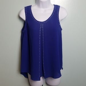 Michael Kors top size PM in beautiful cobalt color. Studded along the neckline and the sleeves.