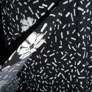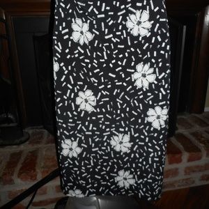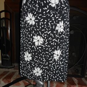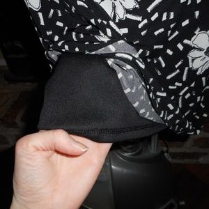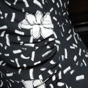 New with tags! Comfortable and classic Taylor faux wrap style dress. Pull on style. Fully lined. Ruched waist detailing. Knit jersey material. Poly/spandex blend. Ruched at shoulders as well. Black base with white floral and confetti print. Size 6. Price is firm. Appx. measurements are noted below taken laying flat: