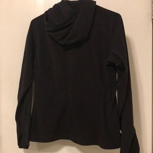 Women’s black North Face fleece sweater with hood. Fitted. Perfect for a cold winter day! Gently used. Size L.