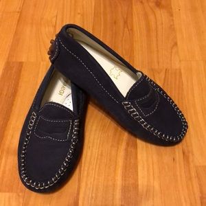 Boys Navy suede loafers