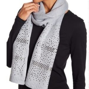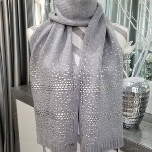 Fabulous & chic Michael Kors GRAY knit scarf features sassy silver nailhead detailing and MICHAEL KORS name plate. Make this fabulous hat a staple item for your winter wardrobe or give it as a gift to someone you care for!