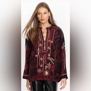 A show-stopping top for the holidays, or anytime, this women's top has it all: ruffles, a bow, and flounce hemline!
