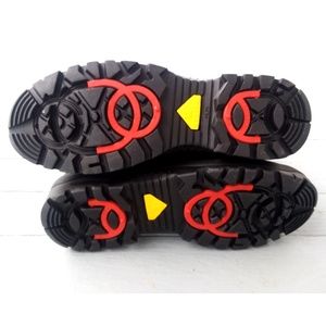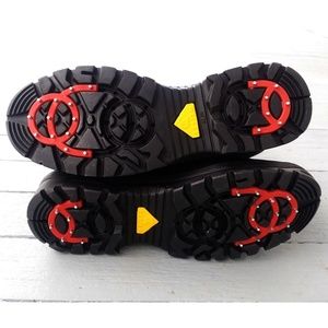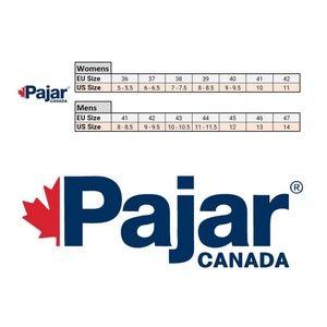 Pajar Canada Ice Grip men's winter boots. Black nylon upper w/ special ice-gripper soles. NWT but no box. $225 retail. Euro moto style. Warm & waterproof. Slip-on w/ two Velcro strap closures. Red sole inserts pivot to expose stainless studs for snow and ice. Small pocket tool included to quickly flip and lock the inserts into place. (See pics for both positions.) Faux shearling lining. Great boots from Pajar, a leading Canadian outerwear company. EU size 43 (US 10 to 10.5.) See size chart pic.