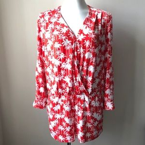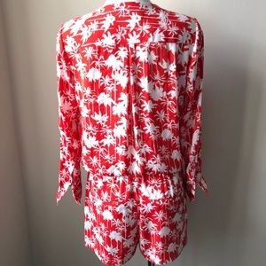 EUC bright, red-orange romper with palm tree print from Trouvé. Comfortable and beachy! ☀️🏝
