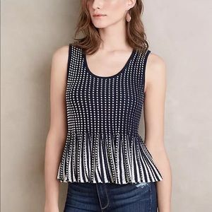 Anthro Moth Ostinato Peplum Knit Tank Navy & White