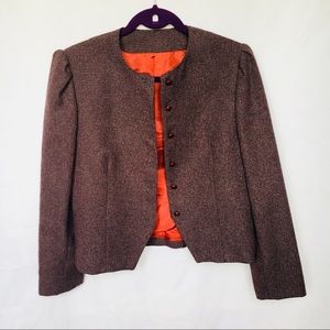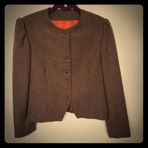 Fitted blazer. Measurements are 17” armpit-armpit, and 21” in length. Pretty pearly buttons.