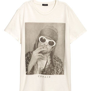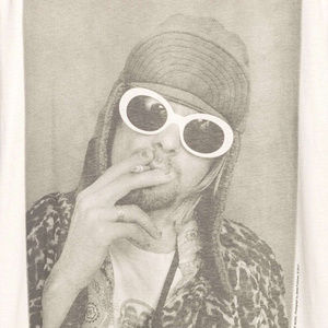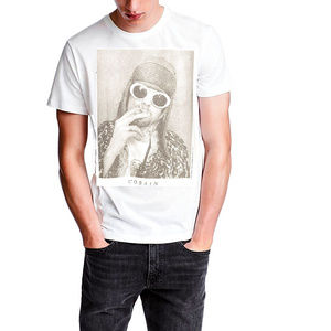 This T-Shirt features the front man of Nirvana with cigarette.100% Cotton