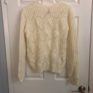 This cream colored sweater is super soft and comfy. It would look great with jeans and boots. I recommend adding a light pink or light blue tank top underneath for a little pop of color. Many knitted sweaters are itchy, but this one is super soft definitely NOT itchy. It is in really good condition, but does not fit me anymore.