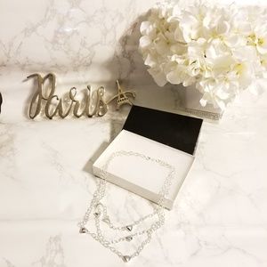 Description: Never worn Silver Three Tier Necklace with Hearts.