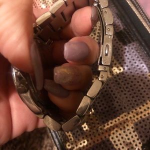 Michael Kors Watch Silver watch needs new battery. Has been sized down to fit small wrist. Few scratches on the back as shown none on the face. All stones in place.