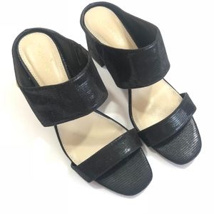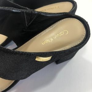 These Calvin Klein Heels area size 8.5 and in in great condition, No flaws. They have a mule style with a a double strap and a stacked heel. They are perfect for year round use with the classic black color and the small snakeskin pattern embossed in it. Thank you for looking and feel free to add with another item from my closet for an additional discount or send me a great offer, who knows, i’ll more than likely accept!