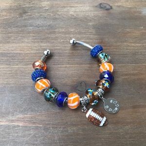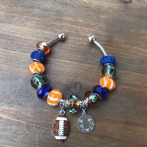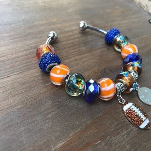 Show off your team spirit with class! One of a kind hand designed and created, by me.. with premium quality designer glass beads and complimenting crystal charm beads. Hand stamped for a personal feel. Discounts given on multiple item purchases. Makes a special gift!