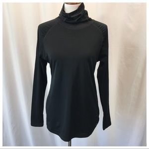 Excellent option for outdoor activities! Stay warm with this fleece lined top, mesh at front turtleneck for easier breathing and warmth. Long sleeves with thumb holes, long length covers waistline. 13% spandex for ultimate movement.