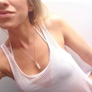 Rose Quartz Healing Gemstone Necklace Boho Gem Stone Gold Pink Crystal Pendant