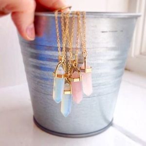 Pink Rose Quartz Crystal Gemstone Pendant Gold Necklace Healing Gem Stone Boho
