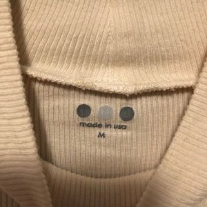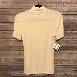 NWT Women’s Three Dots ribbed mock neck top in excellent condition. Size small and medium available. Neutral cream color. Slim fit, lightweight viscose material. Made in the USA