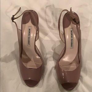 Gently used black strap heals. I have a MB box but am unsure if it is the one that came with them. Purchased at Neiman Marcus. They are super cute on.