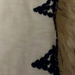This white cotton shirt is covered in gorgeous hand stitching. 100% comfortable cotton. Unfortunately i cut the tag out bc it was scratching me. But i got it not long ago. It is medium or looser on a small. Everything is done with detail and high quality sleeves are cropped.