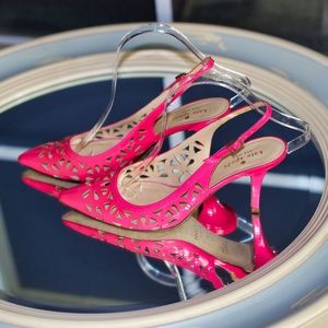 The Kate Spade New York Jacey slingback features precise cutouts and a pointed toe to lend edge to the conventionally conservative kitten-heel pump.