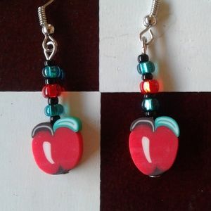 NWT Handmade Fruit Dangle Earrings Apple
