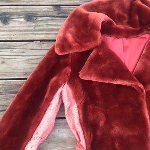 Gorgeous amber fur jacket. Has some peeling (as shown in photos) but it adds character. It’s a gem 💎. Very soft, extremely warm and a flattering shape.