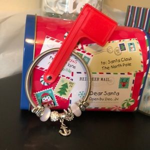 Beads& Charms Anchor Horseshoe Studs& Rhines Bracelet Silver on White w/Sparkle for the holidays snap clasp!!