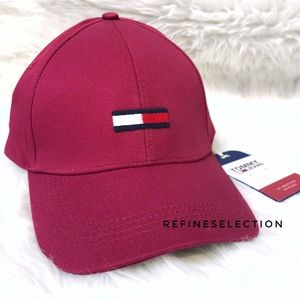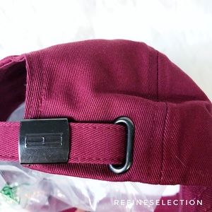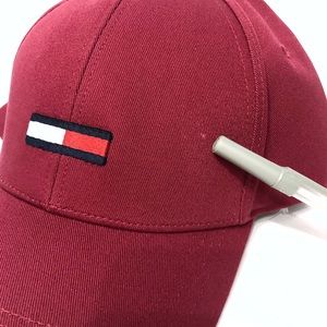 Brand new, Adult, Unisex, One Size. This Tommy Hilfiger Jeans Embroidered Logo Maroon Strapback Hat Cap is a classic staple! Solid maroon / burgundy / wine color with the Tommy Hilfiger flag box logo embroidered on the front in red, white and blue. This 6 panel baseball style cap brings back the retro, vintage vibes. Adjustable strapback for the perfect fit. The Tommy Hilfiger logo is on the back metal clasp as well. Made of Cotton. It has a tiny mark, as shown in the last picture.