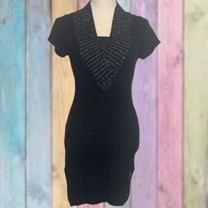 BLACK MOCK NECK LINED SEQUINS DRESS