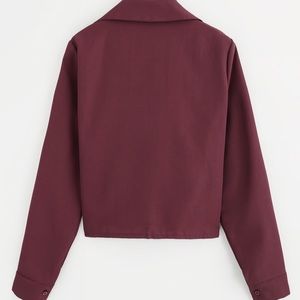 Burgundy Floral Embroidered Button Down Tie Front Top