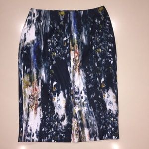 Lela Rose Abstract Art Pencil Skirt Navy Orange 4