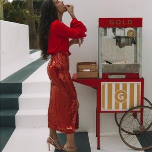 Gorgeous skirt from Zara, bloggers favorite, evening wear collections, brand new with tag, limited edition red sequins skirt, slit front