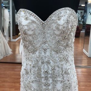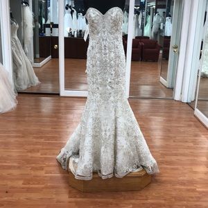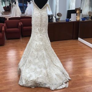 @londs hi, we will double check tomorrow to make sure we still have this in stock. As to your second question, our wedding gowns are in store samples but otherwise new with the tags. Will circle back tomorrow morning. Thanks!