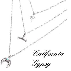 New bohemian festival gypsy silver alloy multi strand necklace with palm tree, dolphin tail and faux turquoise crescent.โจ Check out my other listings for more boho items for women children and infants. Bundle and save on shipping plus get an additional discount!๐ The more you bundle, the more you save!