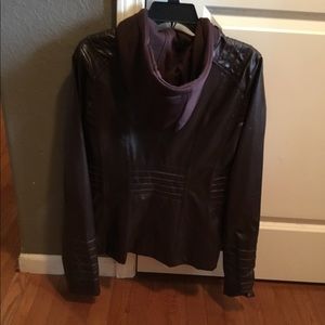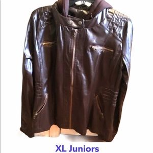 Junior brown leather like jacket with hoodie