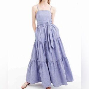 J. Crew gingham print, midi ruffled wrap skirt in size 16. The skirt is unlined, 100% cotton and has side pockets.