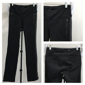 Great condition. Ruching style fabric. Have pockets. Small opening in waist band. Drawstring inside of waist band. Color: dark gray. Material: body1: nylon, spandex. Body2: supplex nylon, lycra spandex.