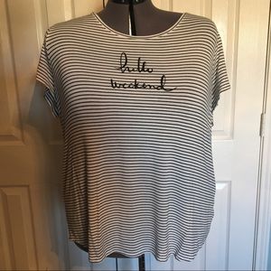 Dress Barn Sunday line Hello Weekend striped dolman tee. Extremely soft stretch knit with short sleeves. Does show some minor wash wear.